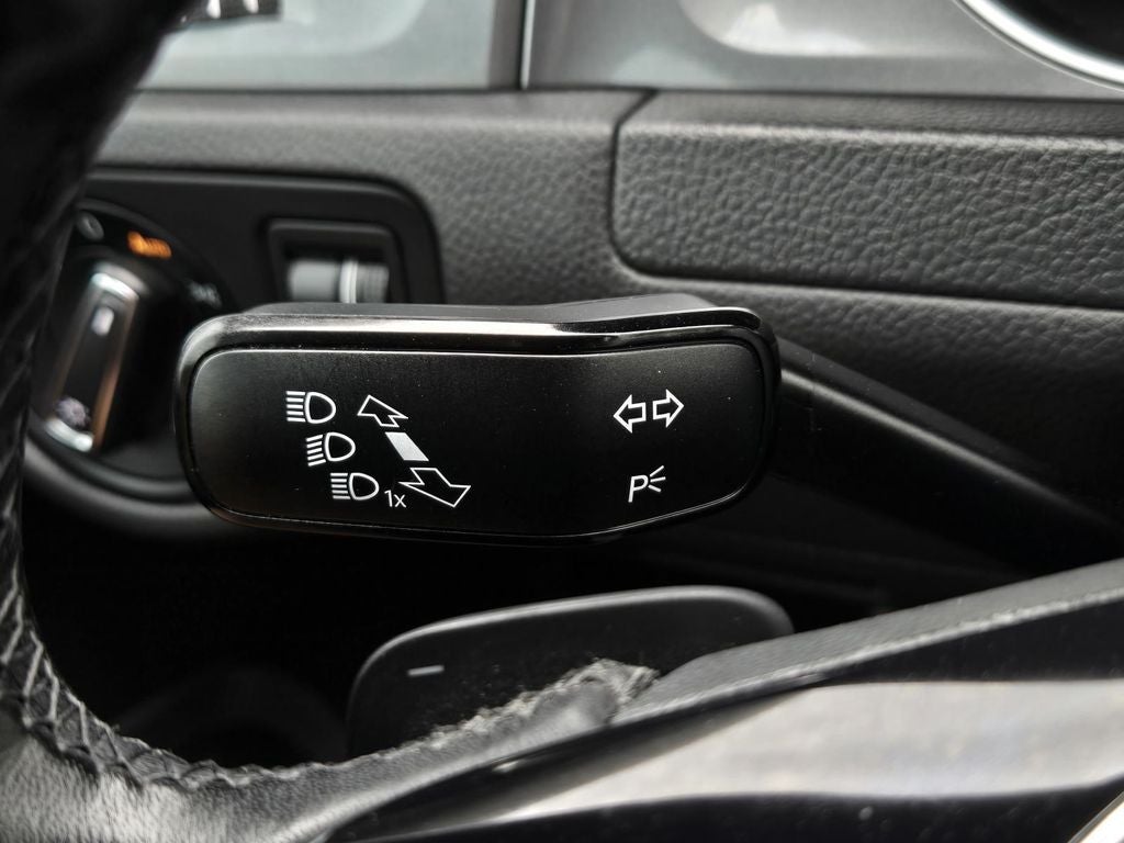 - Leather and piano black steering wheel