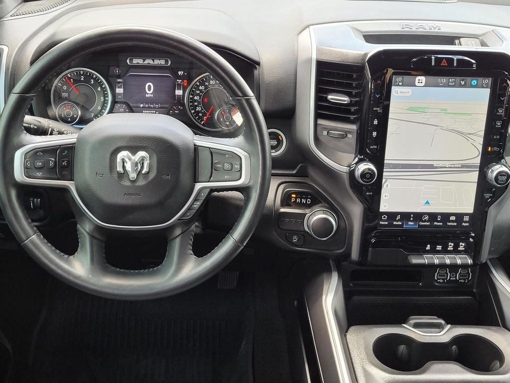 Big Horn Level B Equipment Group: SiriusXM Radio Service; Rear Window Defroster; ParkSense Front/rear Park Assist with Stop; Rear View Auto Dim Mirror; Power Adjustable Pedals; Rear Power Sliding Window; Rear Dome with On/off Switch Lamp; Front Fog Lamps; Lone Star Instrument Panel Badge; Glove Box Lamp; Media Hub with 2 Charge Only USBs; Exterior Mirrors with Heating Element; Power 8-Way Driver Seat; Auto Dim Exterior Driver Mirror; Global Telematics Box Module; Heated Front Seats; Heated Steering Wheel; Black Exterior Mirrors; Class IV Receiver Hitch; Security Alarm; Black Premium Power Mirrors; Remote Start System; SiriusXM Satellite Radio; 400W Inverter; 9 Amplified Speakers with Subwoofer; Uconnect 5 Navigation with 12.0" Display Radio; Exterior Mirrors with Supplemental Signals; Exterior Mirrors Courtesy Lamps; Air Conditioning ATC with Dual Zone Control; 115V Auxiliary Power Outlet; Cluster 7.0" TFT Color Display; Universal Garage Door Opener; Power-Folding Mirrors; 2nd Row in Floor Storage Bins; Convex Wide-Angle Exterior Mirror Insert; Sun Visors with Illuminated Vanity Mirrors; LED Footwell Lighting; Power 2-Way Driver Lumbar Adjust. Quick Order Package 27R Lone Star: Lone Star Badge. Night Edition: 275/55R20 OWL All Season Tires; Deluxe Cloth Bucket Seats; Accent Color Premium Power Mirrors; Exterior Mirrors with Supplemental Signals; Black Headlamp Bezels; Exterior Mirrors Courtesy Lamps; Exterior Mirrors with Heating Element; Auto Dim Exterior Driver Mirror; Black Exterior Truck Badging; Anti-Spin Differential Rear Axle; 20" X 9.0" Premium Paint/polished Wheels; Accent Color Door Handles; Grille Surround 1 Black Texture 2 Black; Black Interior Accents; Dual Exhaust with Black Tips; Power-Folding Mirrors; Body Color Front Bumper; Convex Wide-Angle Exterior Mirror Insert; Body Color Rear Bumper with Step Pads; RAM Grille Badge - Black; Black Painted Exterior Mirrors Caps. Quick Order Package 23R Lone Star: Lone Star Badge. Uconnect 5 Radio. 9 Amplified Speakers with Subwoofer. Deluxe Cloth Bucket Seats. Blind Spot and Cross Path Detection. Anti-Spin Differential Rear Axle. ParkSense Front/rear Park Assist with Stop. 115V Auxiliary Power Outlet. Remote Start System. Diamond Black Crystal PC. MOPAR Front and Rear Rubber Floor Mats. **Equipment listed is based on original vehicle build and subject to change. Please confirm the accuracy of the included equipment by calling the dealer prior to purchase.**